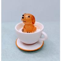 ガラス細工 ティーカップ ダックス ミニチュア 置物 雑貨 犬