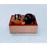 ガラス細工 みかん箱ネコ (ミニ) クロ/茶トラ ミニチュア 置物 雑貨 猫