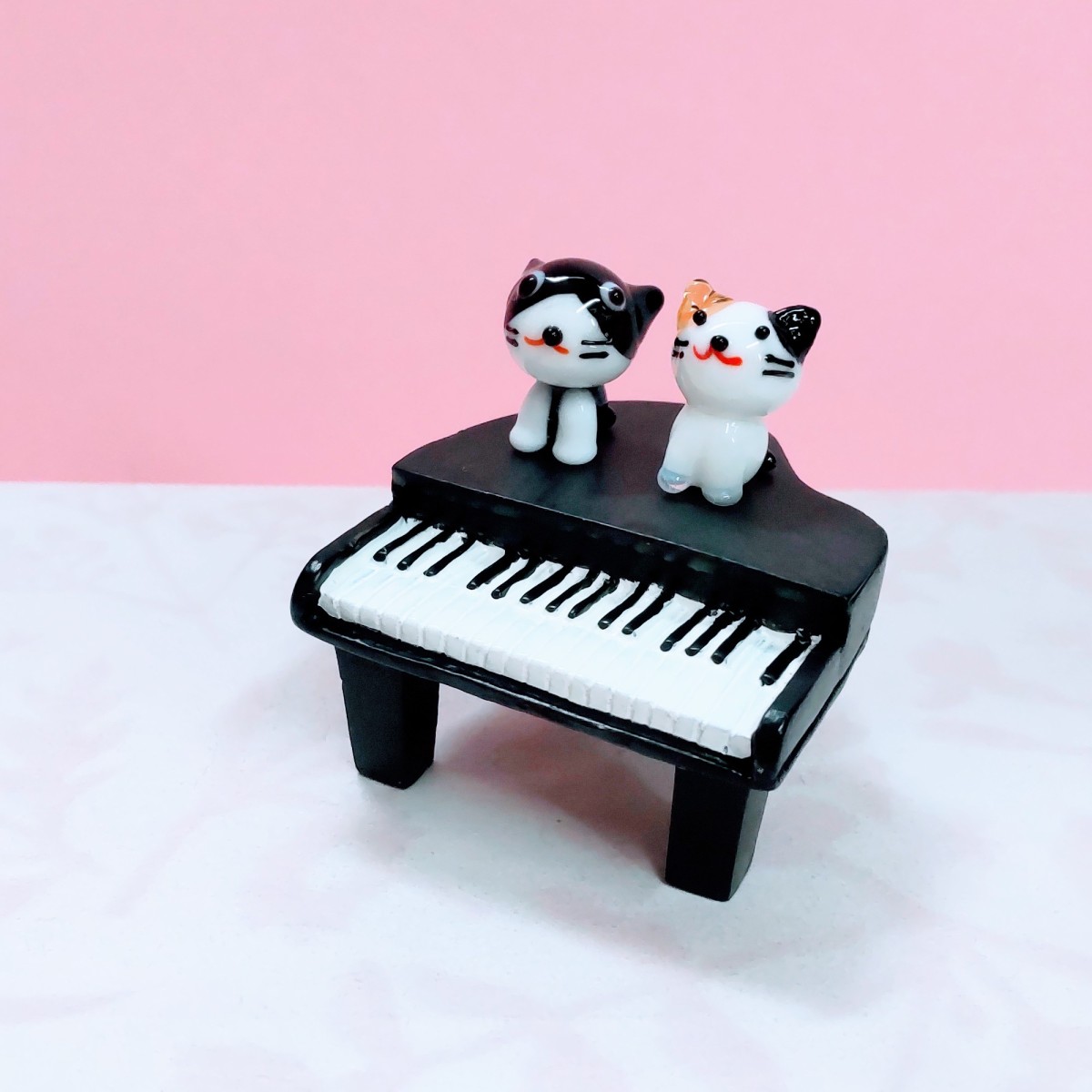 ピアノネコクロ/ミケのガラス細工の置物です。ピアノはポリ製です。