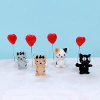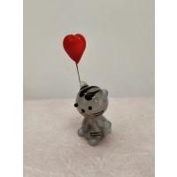 ガラス細工 ハート持ちネコ サバトラ ミニチュア 置物 雑貨 猫 ハート