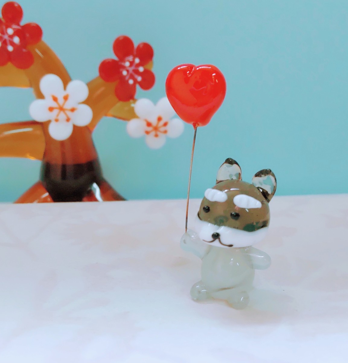 ハート持ちシュナウザーのガラス細工の置物です。