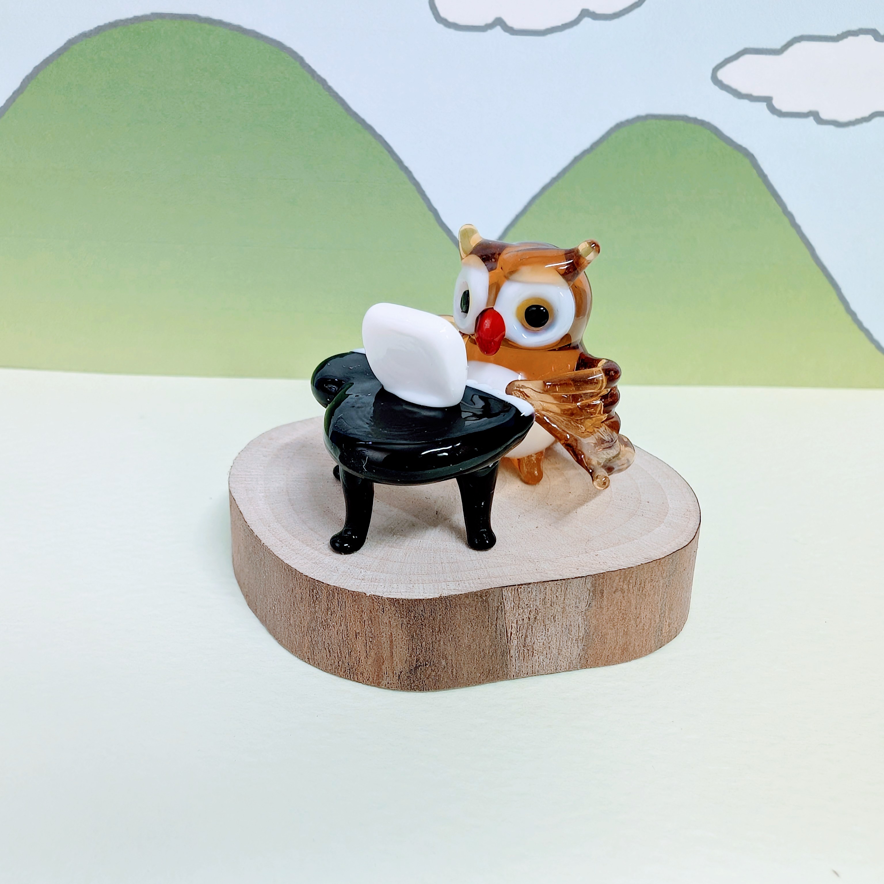 フクロウバンドピアノのガラス細工の置物です。木台は別売りです。