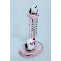 ガラス細工 シマエナガ温度計(S)ピンク ミニチュア 置物 雑貨 動物 鳥 北海道