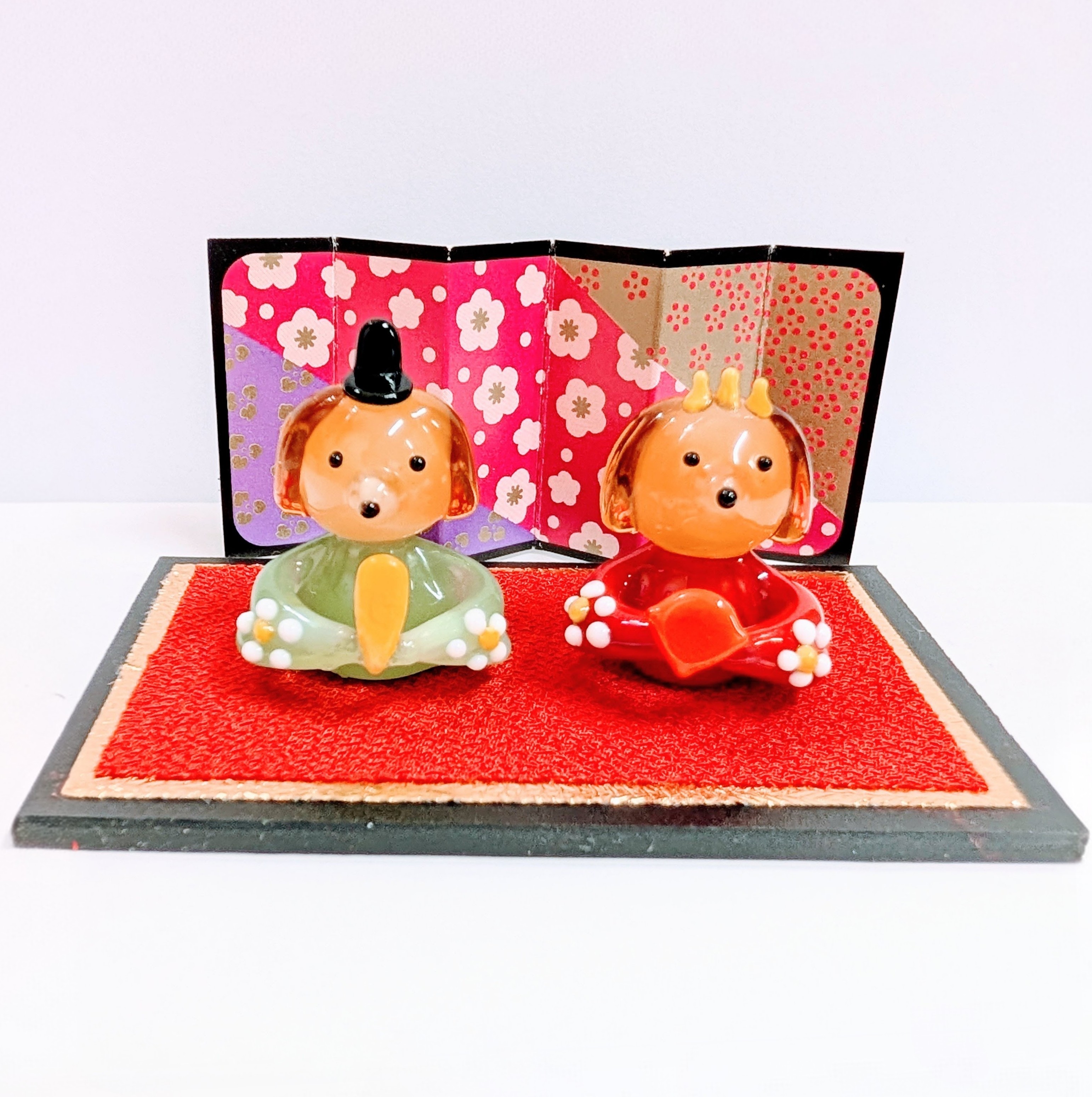 ダックス雛人形セット(L)台、びょうぶ付のガラス細工の置物です。
