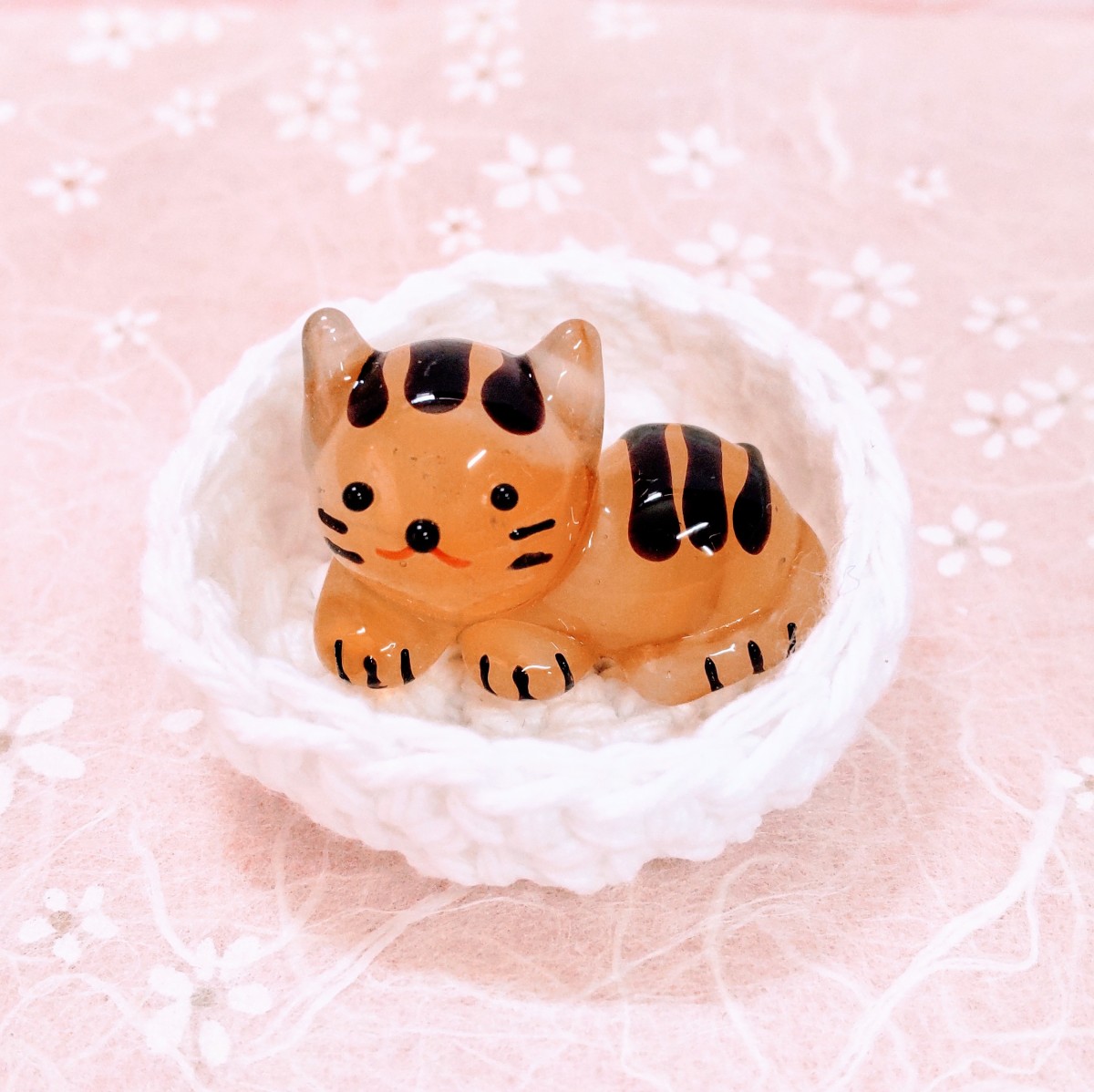 ガラス細工 ネコベット(M) 茶トラ ミニチュア 置物 雑貨 猫 小物 動物