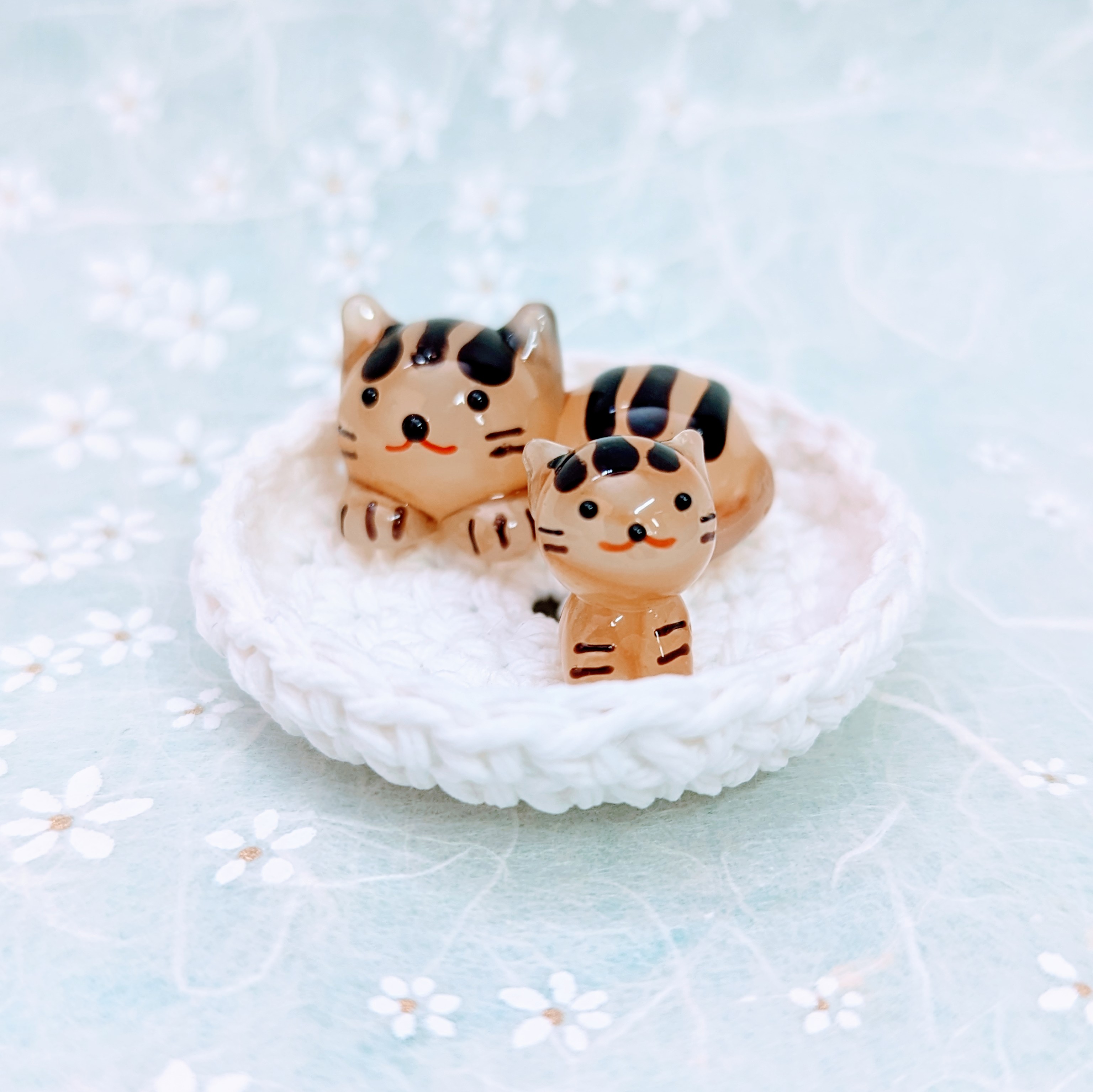 ネコベット(L)茶トラ親子のガラス細工の置物です。
