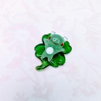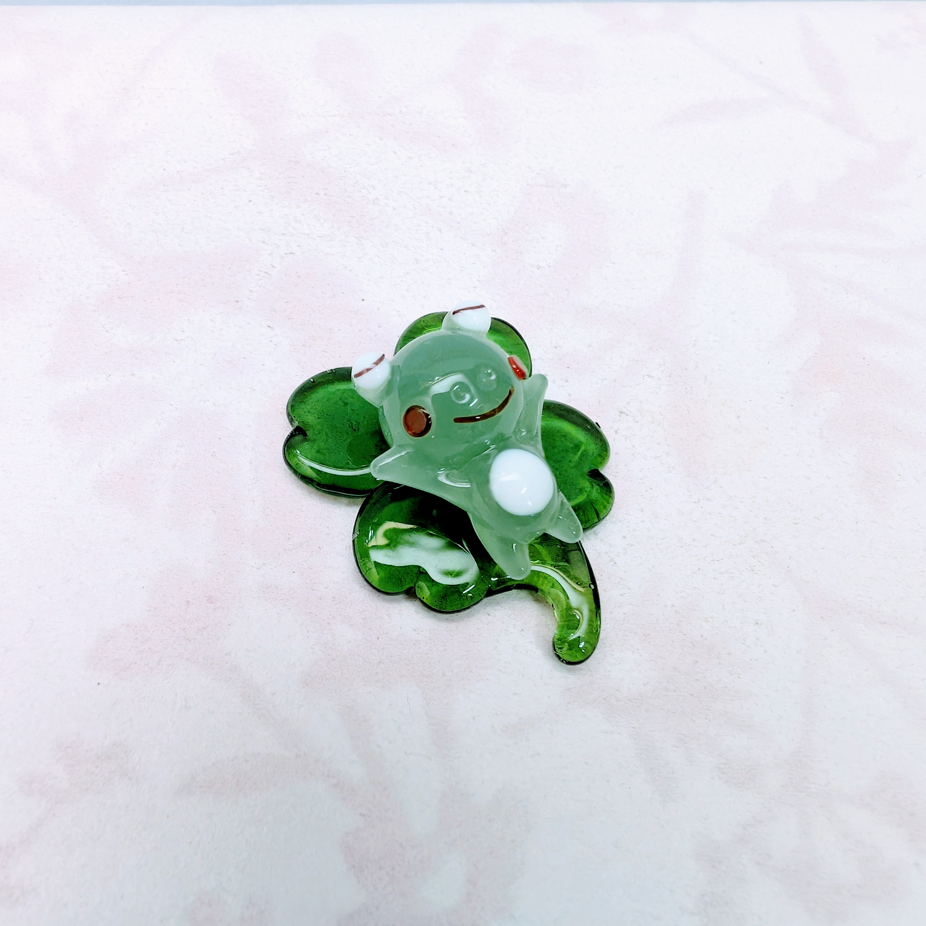 ガラス細工 居眠りカエルと四つ葉 ミニチュア 雑貨 置物 小物 蛙