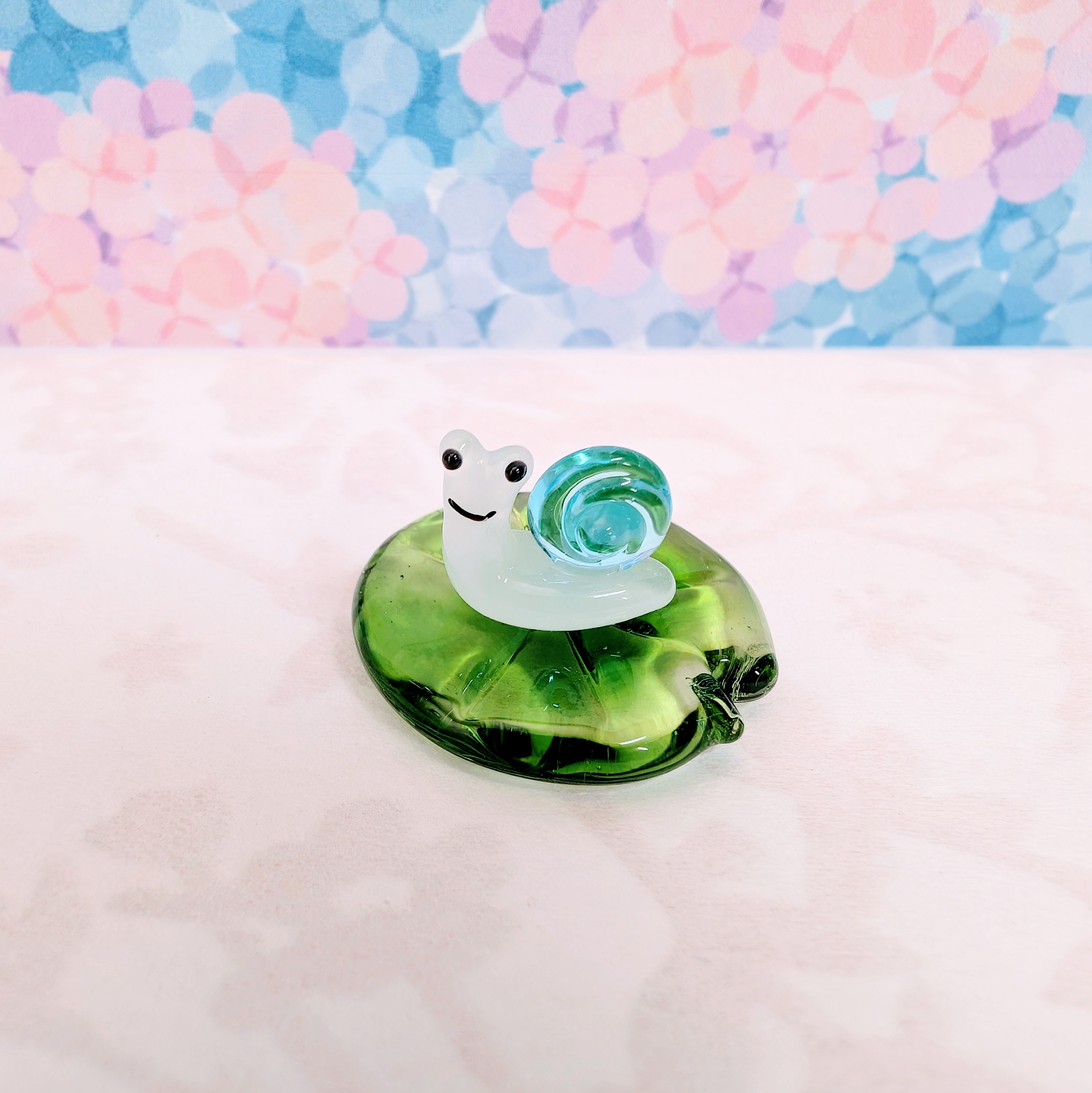 ガラス細工 カタツムリ(青)と蓮の葉 ミニチュア 雑貨 置物 小物