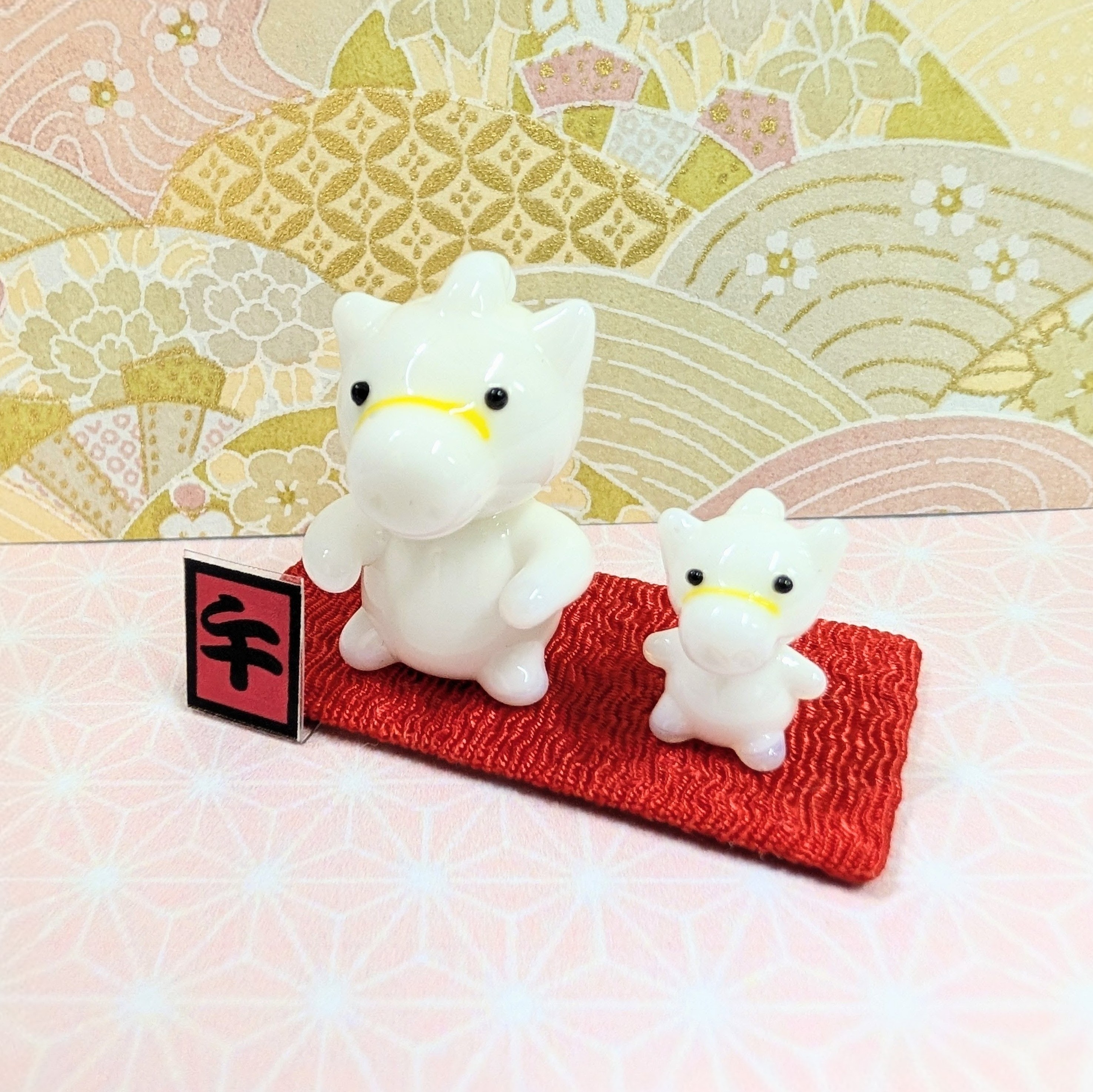 ガラス細工 白馬ペア(看板、ちりめん台付)ミニチュア 雑貨 置物 小物 お正月 午 干支