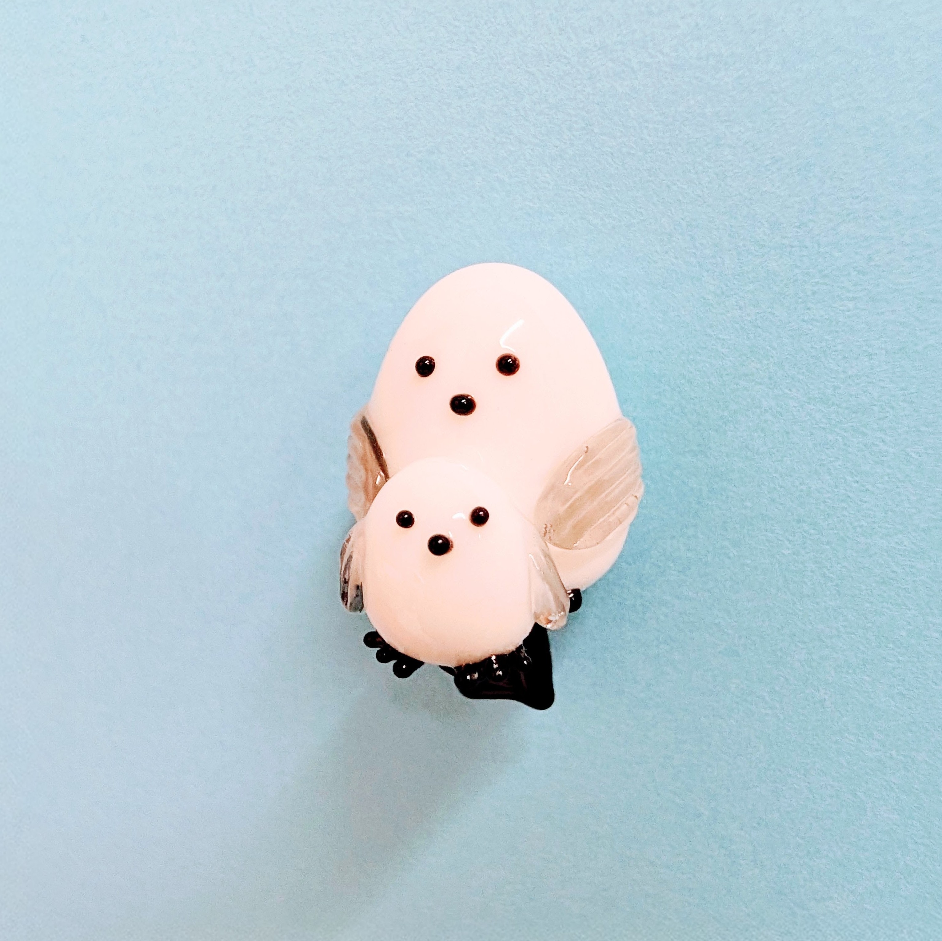 シマエナガ親子マグネット(灰)のガラス細工です。