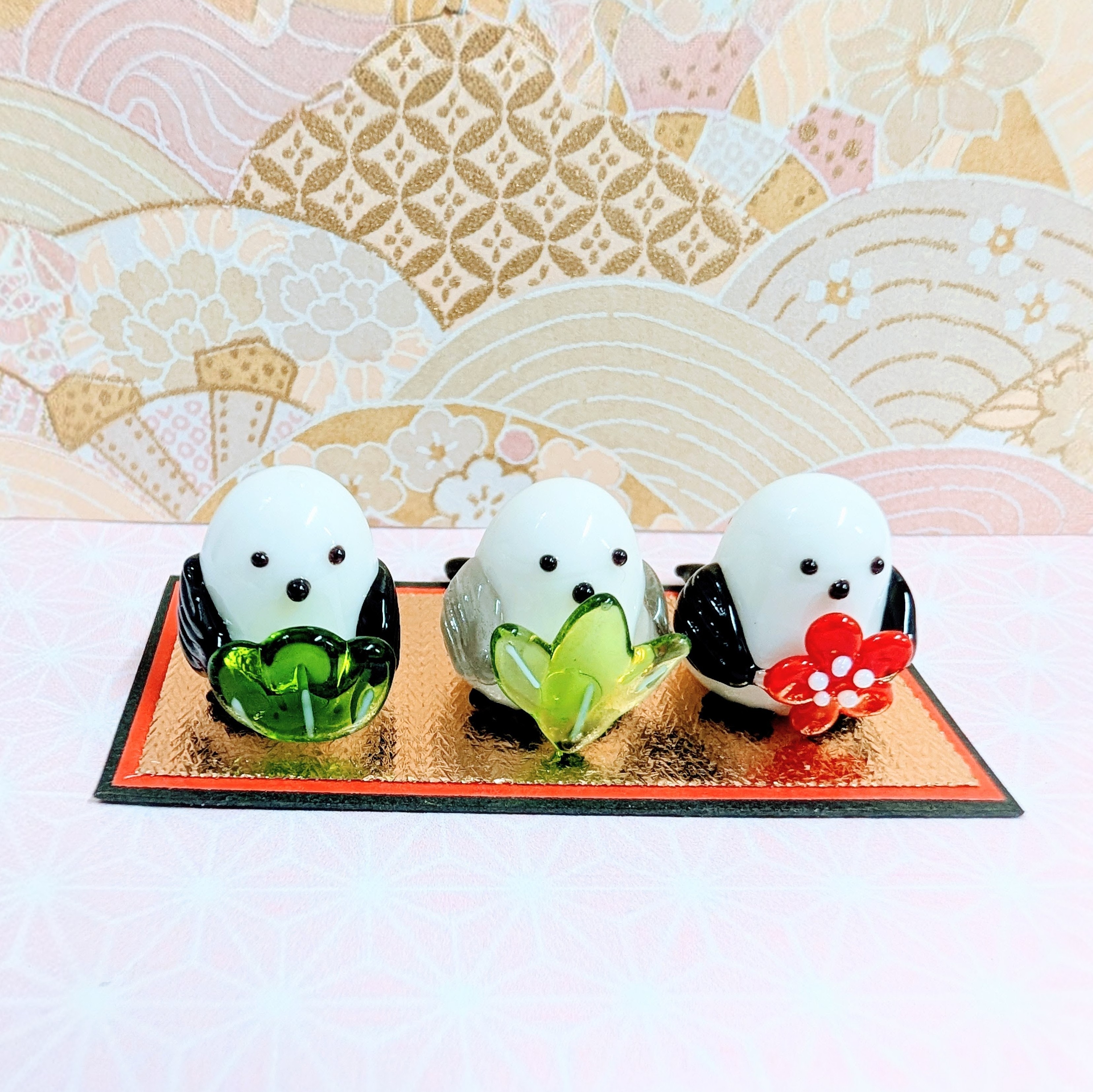 ガラス細工 シマエナガ松竹梅セット(台紙付) ミニチュア 置物 お正月