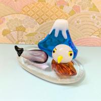 ガラス細工 一富士二鷹三なすび(青) ミニチュア 置物 小物 お正月 初夢