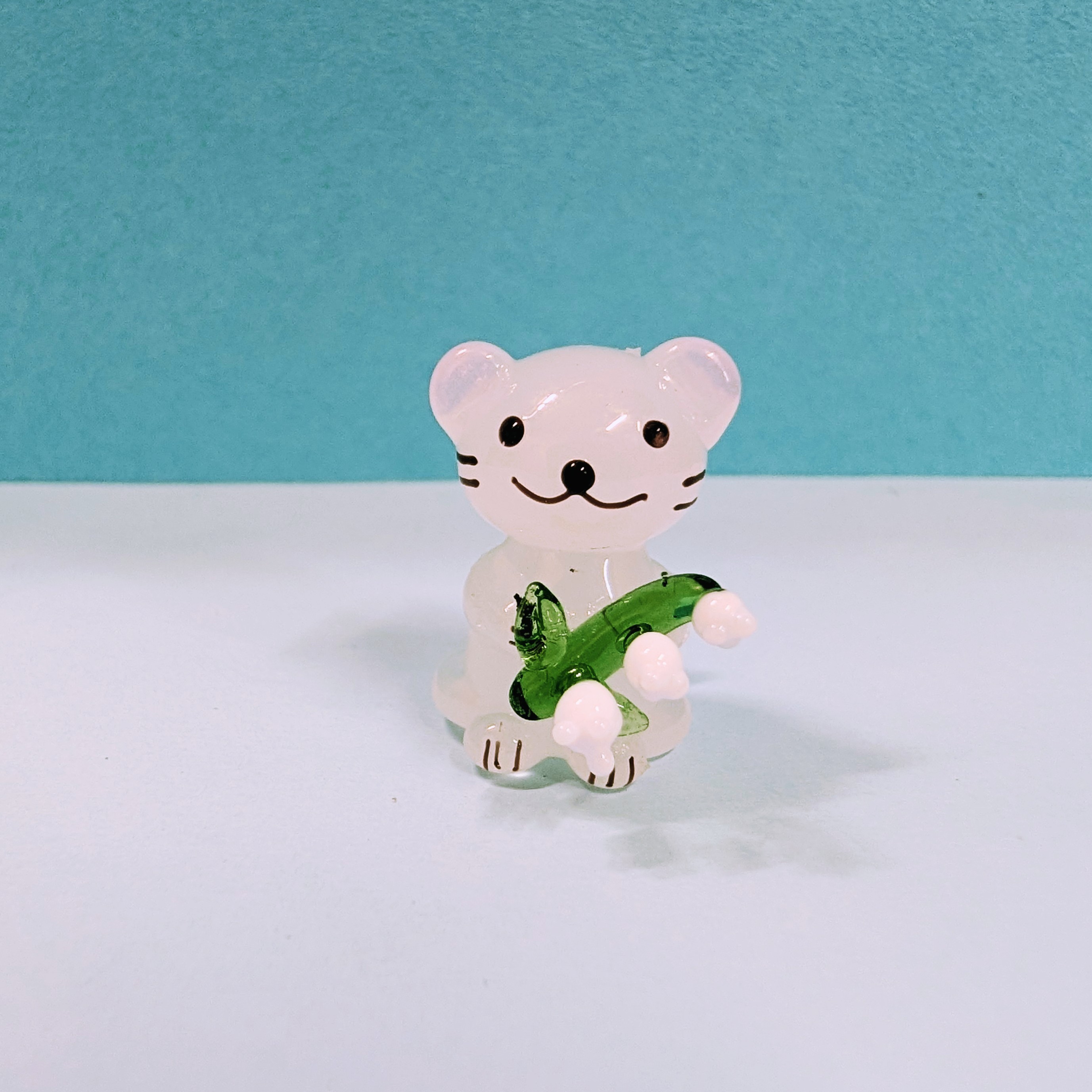 エゾオコジョ(M)スズラン持ちのガラス細工の置物です。