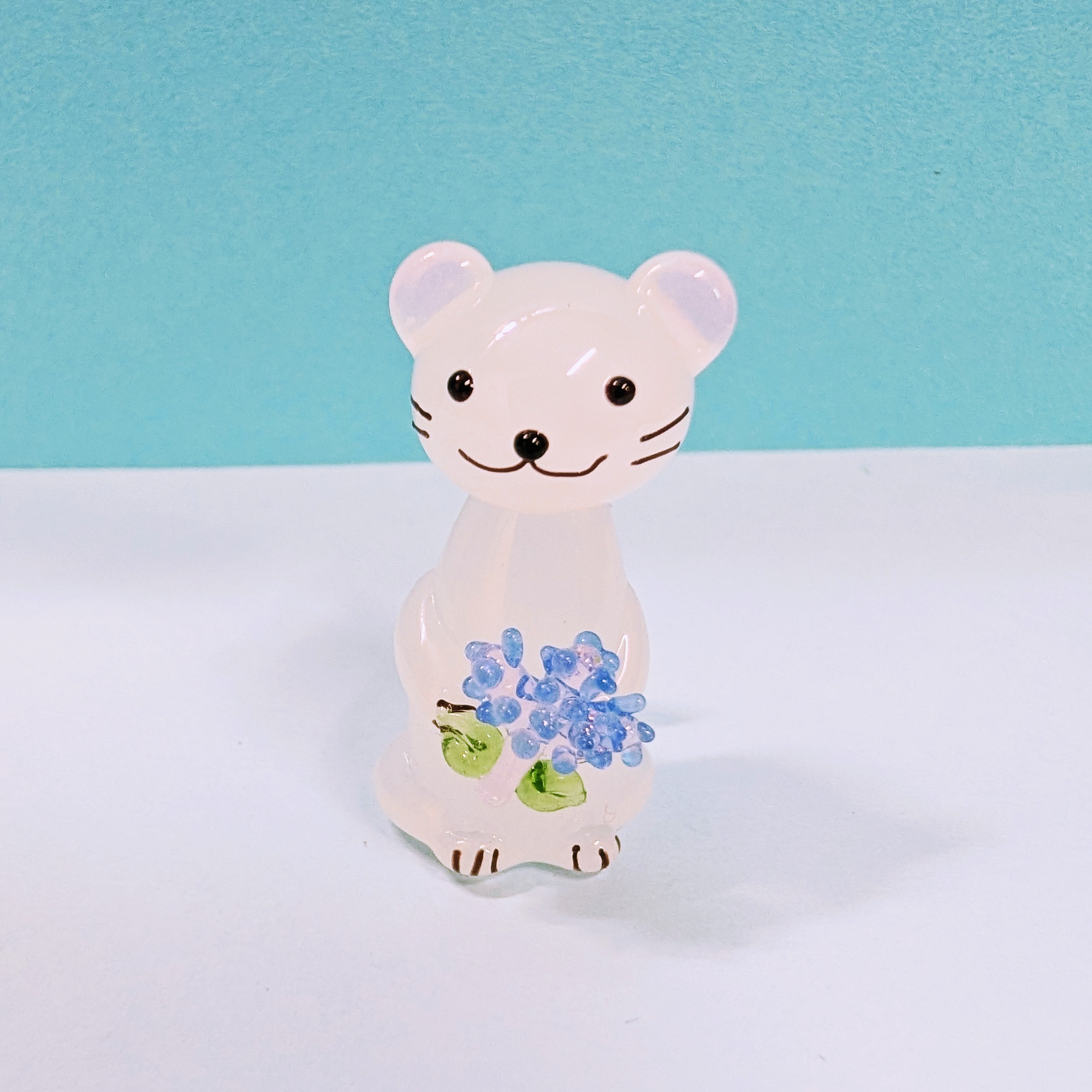 ガラス細工 エゾオコジョ(L) ラベンダー持ち ミニチュア 置物