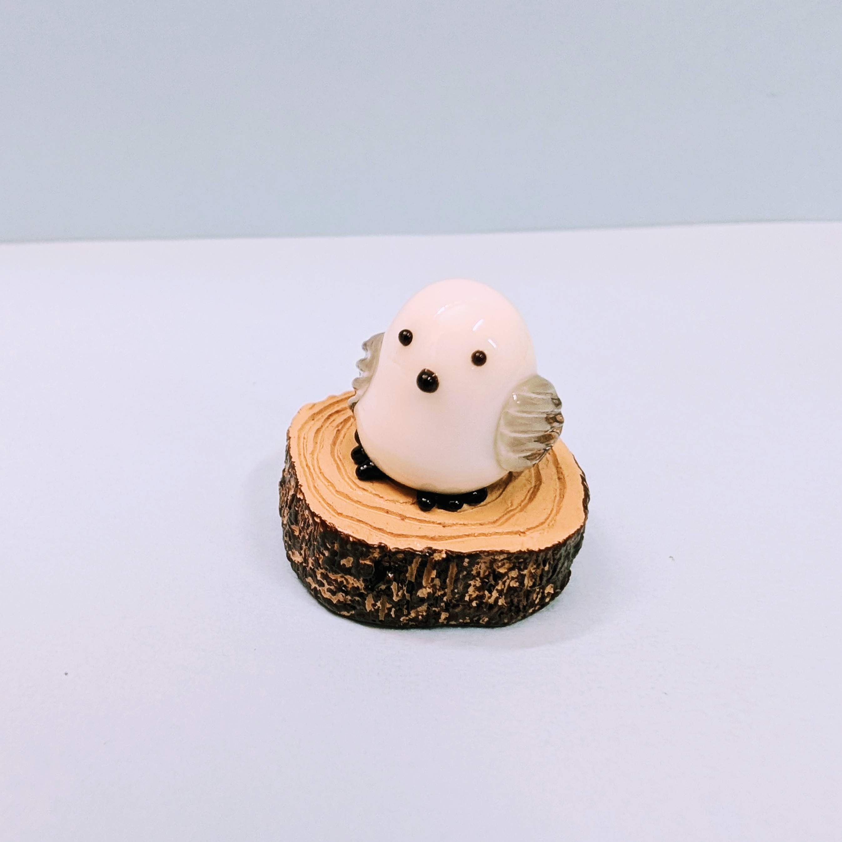 シマエナガ切り株木台(S)グレーのガラス細工の置物です。木台はポリ製です。