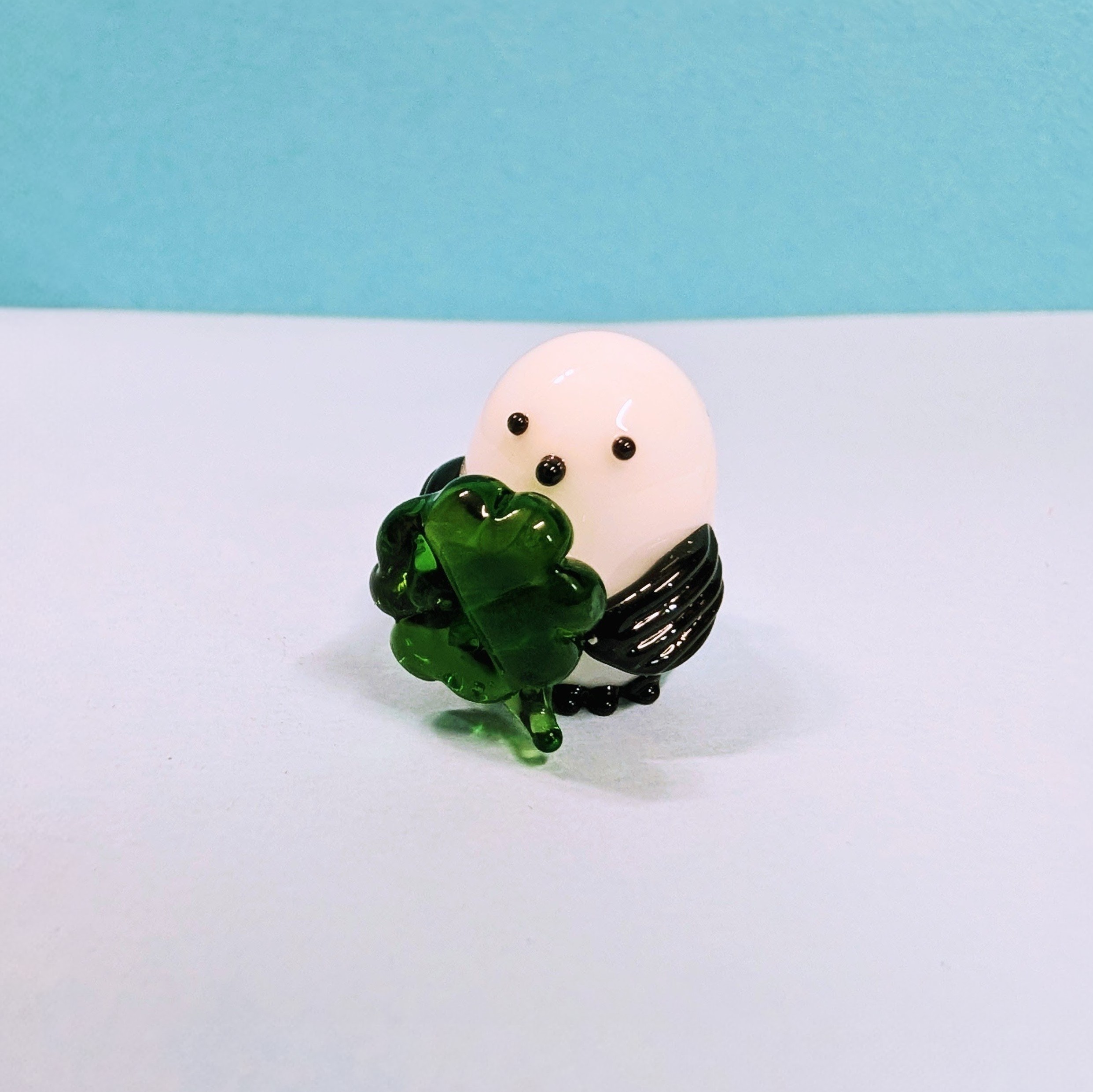 シマエナガよつば持ちのガラス細工の置物です。