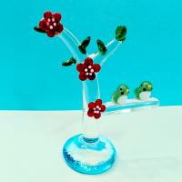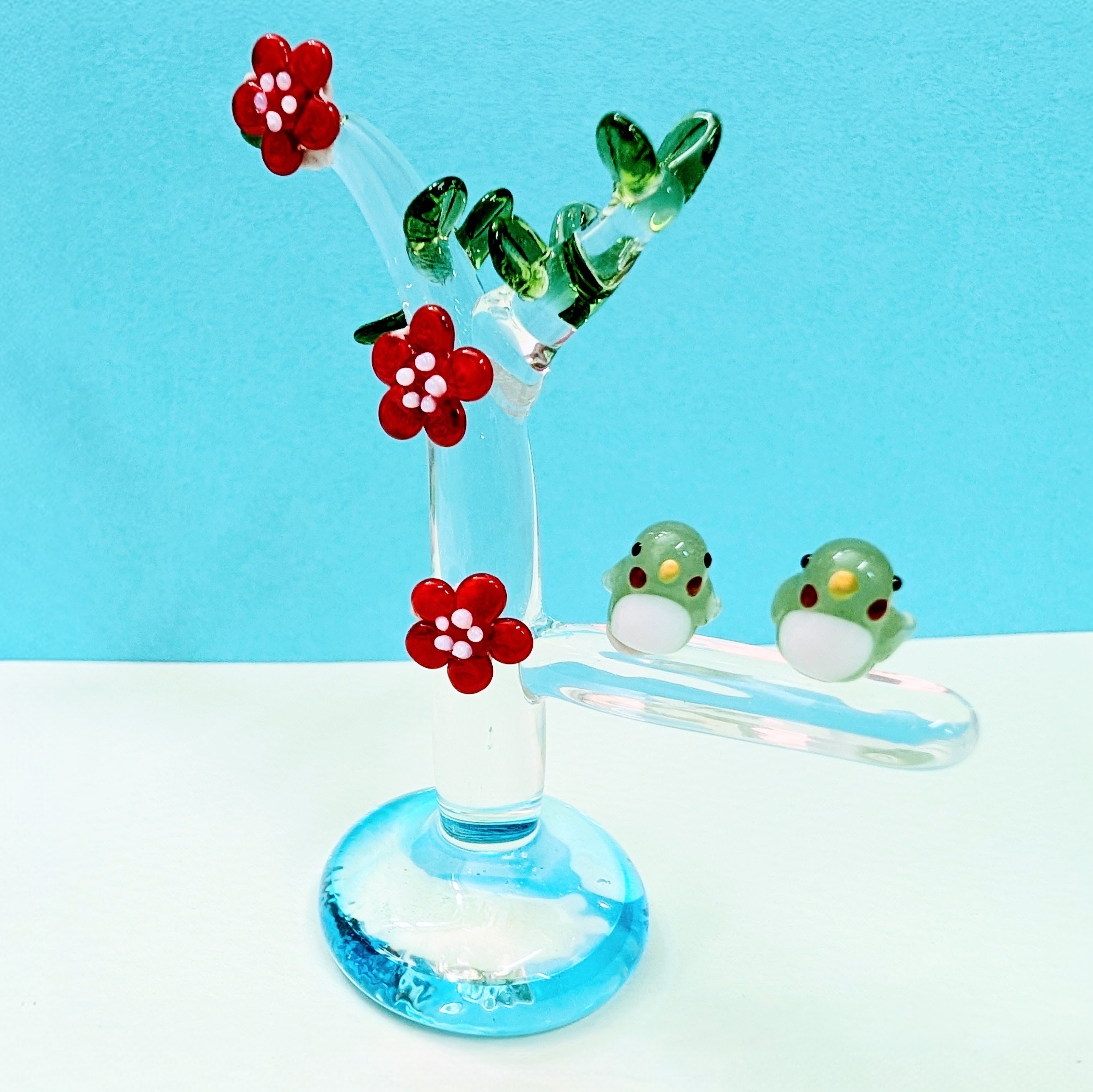 ガラス細工 梅の木とうぐいすペア(クリア) ミニチュア 置物