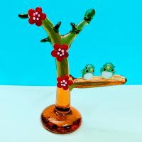ガラス細工 梅の木とうぐいすペア(茶)ミニチュア 置物