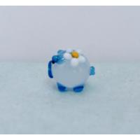 ガラス細工 花ぶた(S) 青 ミニチュア 置物 雑貨 動物 花 ブタ
