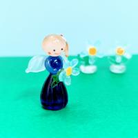 ガラス細工 花の妖精(青い花)ミニチュア 雑貨 置物 小物 天使 花