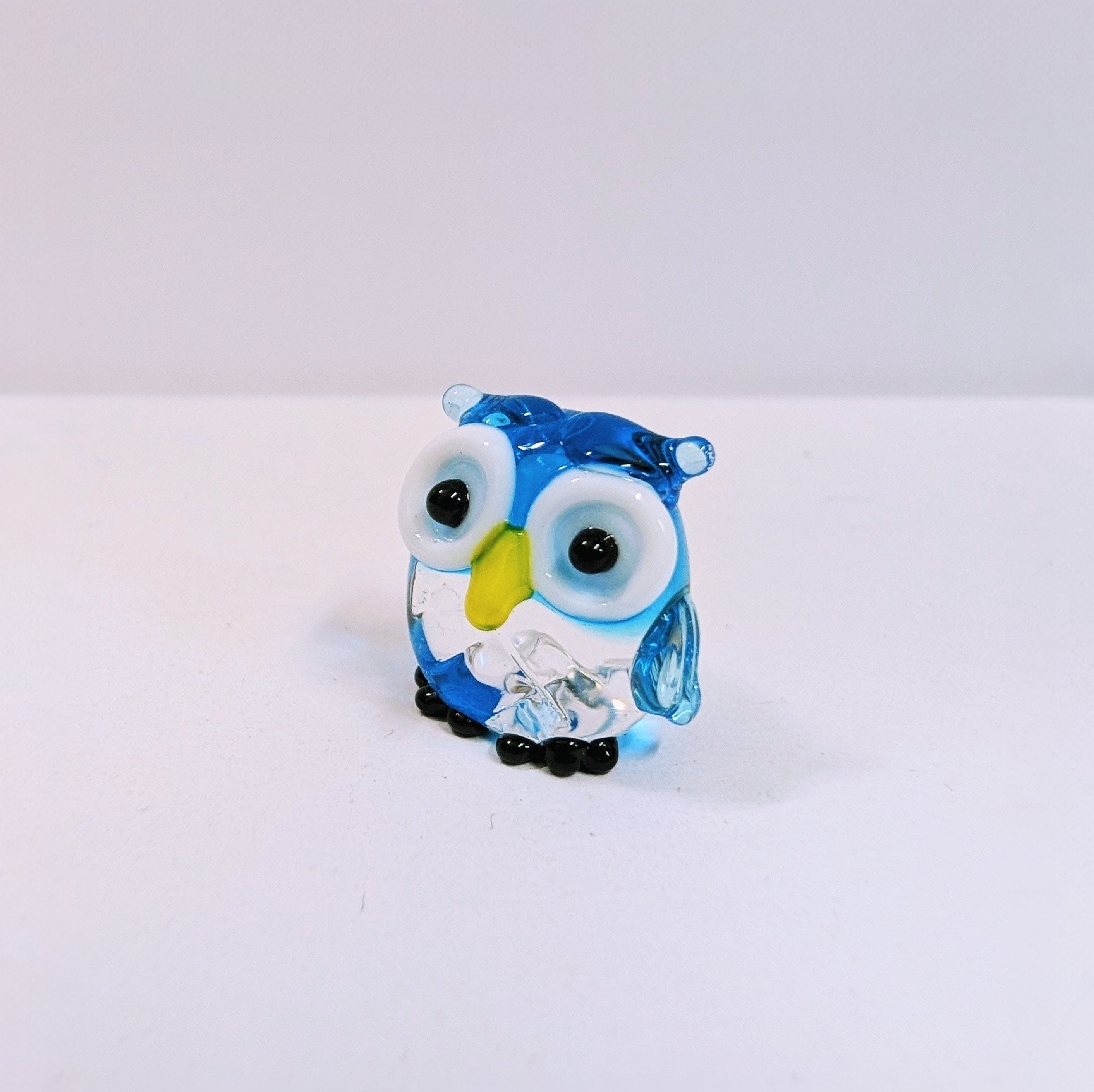 ガラス細工 キラキラふくろう(S) 青 ミニチュア 置物 梟