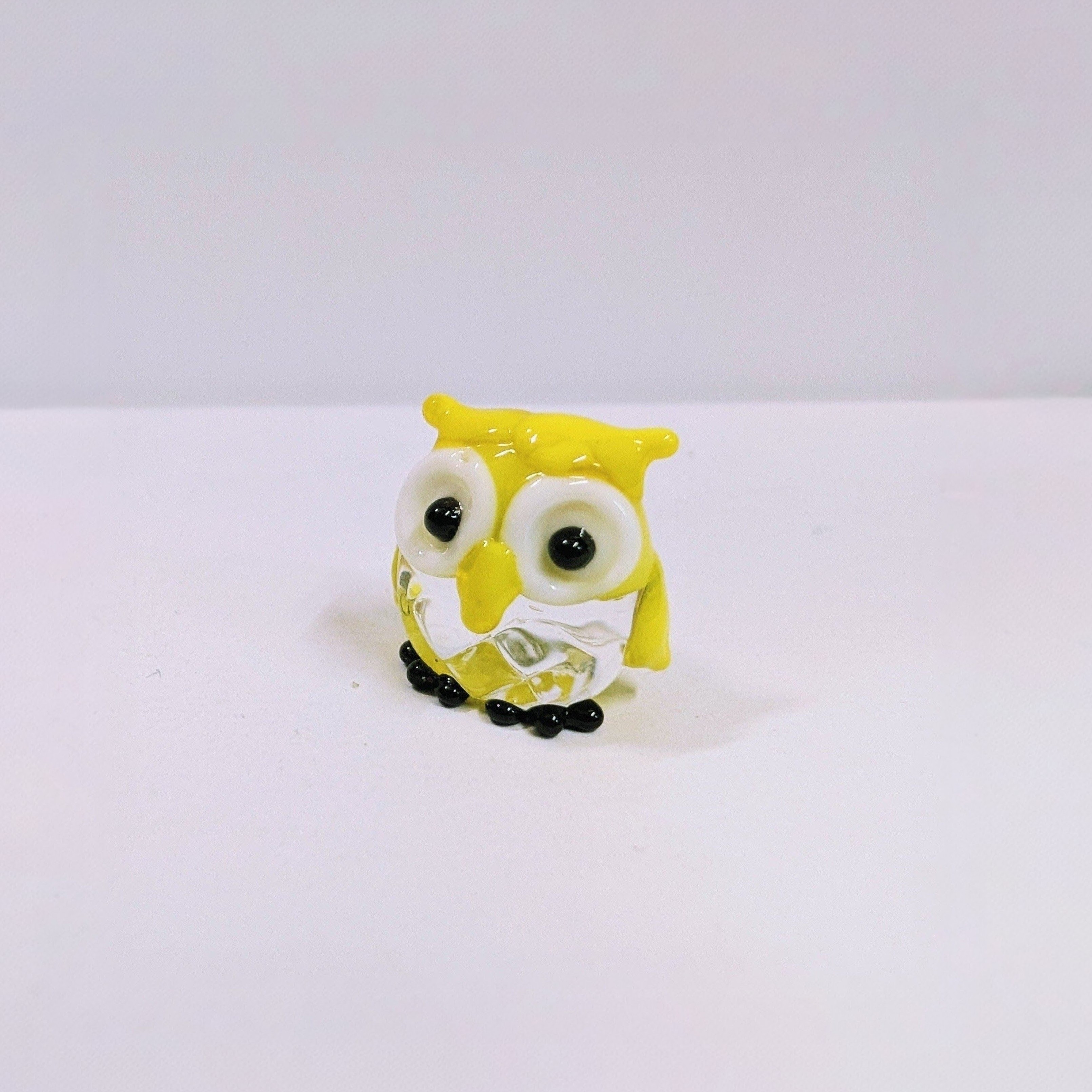 ガラス細工 キラキラふくろう(S) 黄 ミニチュア 置物 梟