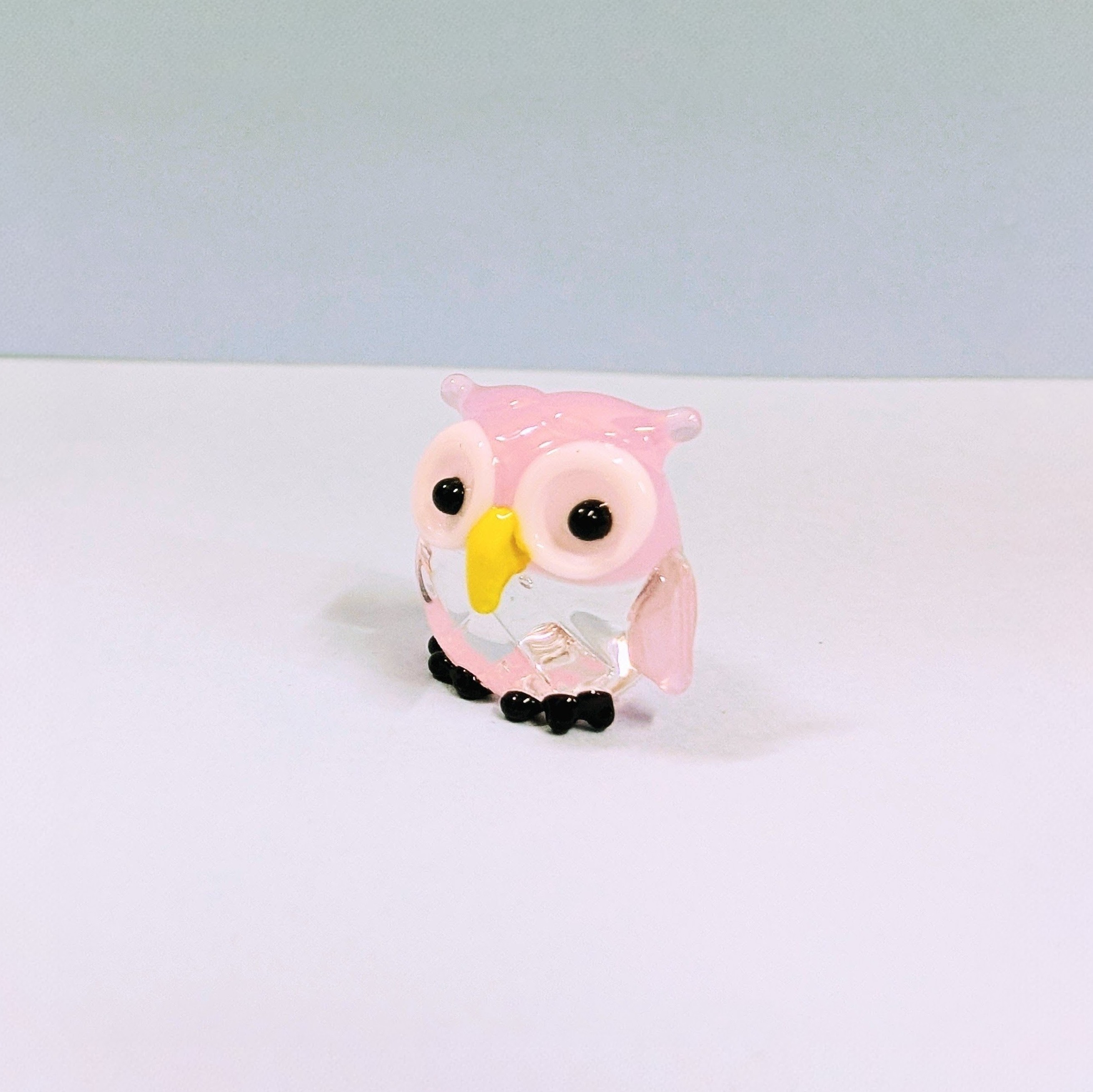 ガラス細工 キラキラふくろう(S) ピンク ミニチュア 置物 梟