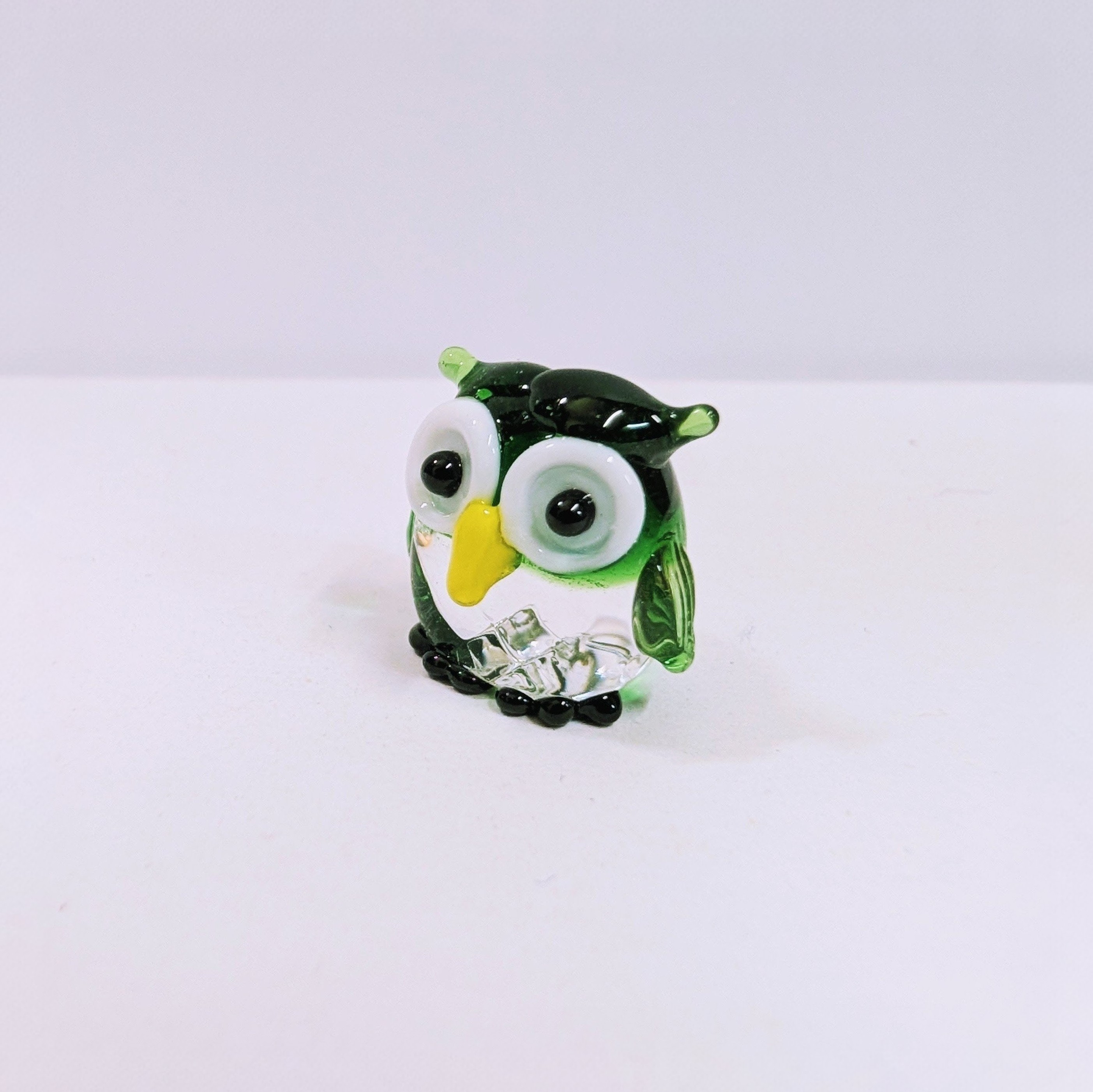 ガラス細工 キラキラふくろう(S) 緑 ミニチュア 置物 梟