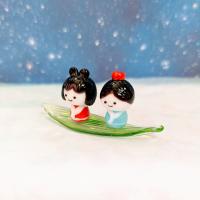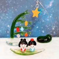 ガラス細工 織姫と彦星(笹舟付)七夕 ミニチュア 雑貨 置物 小物