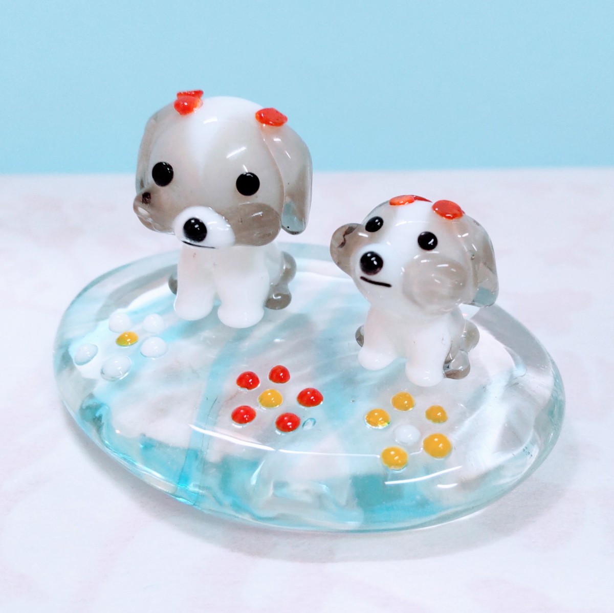 花台ペアシーズーのガラス細工の置物です。