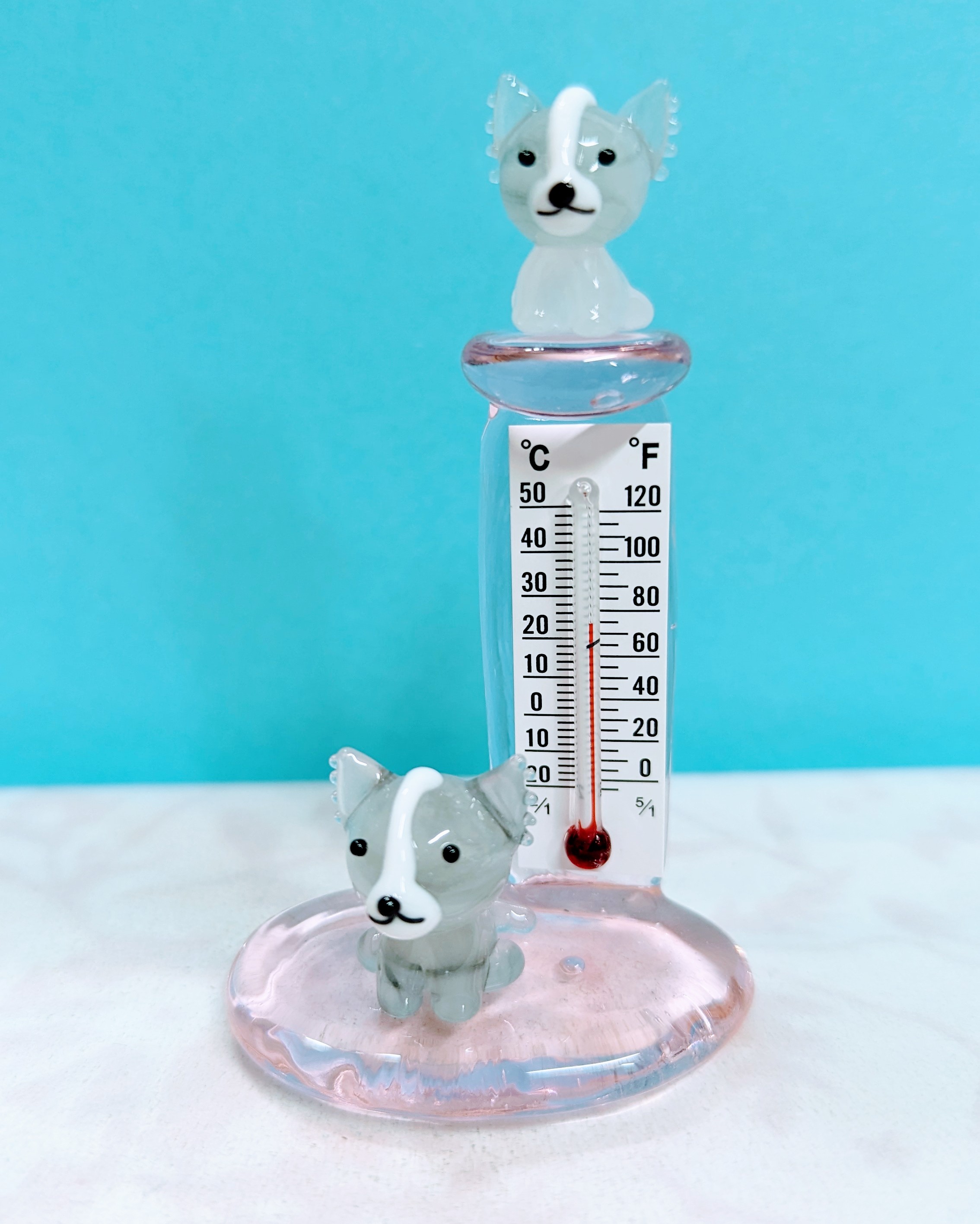 ガラス細工 温度計 パピヨン ミニチュア 置物 雑貨 犬