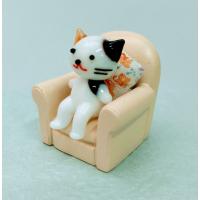 ガラス細工 ソファー(S)ミケネコ座 (クッション付) ミニチュア 置物 雑貨 猫 家具