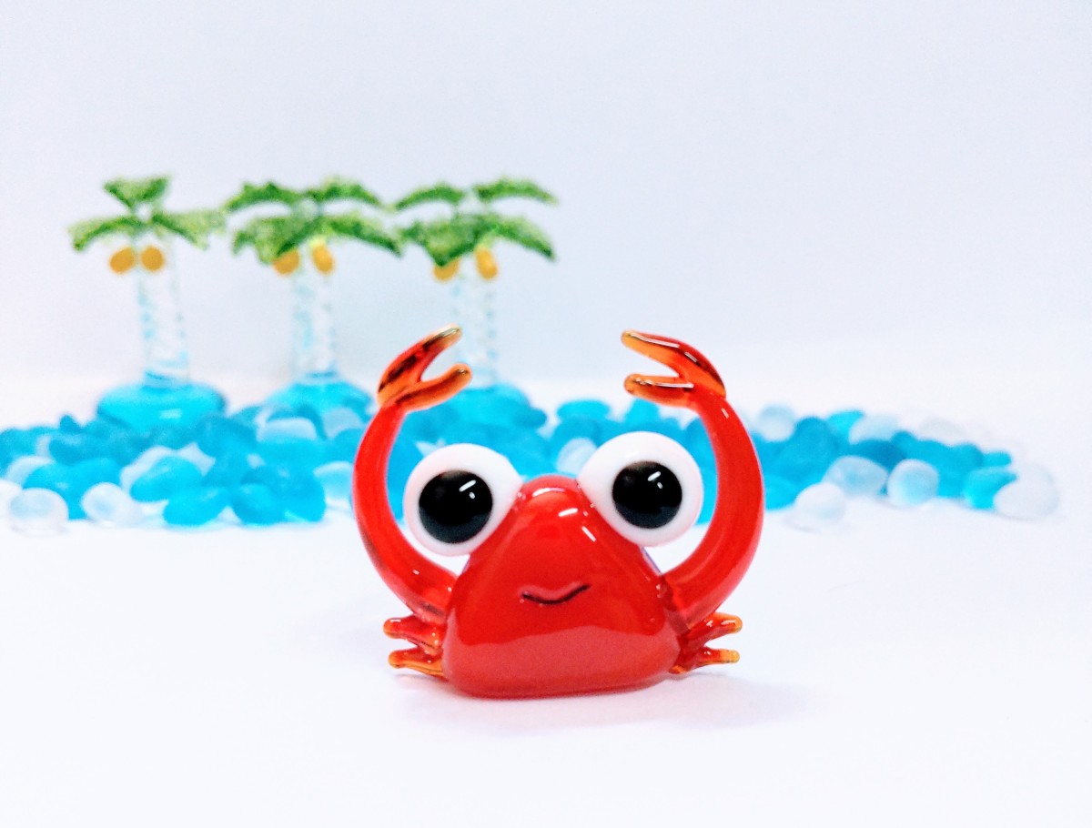 ガラス細工 カニさん ミニチュア 置物 雑貨 魚 海 小物