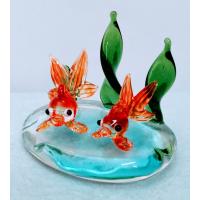 金魚2匹クリア水草台付のガラス細工の置物です。