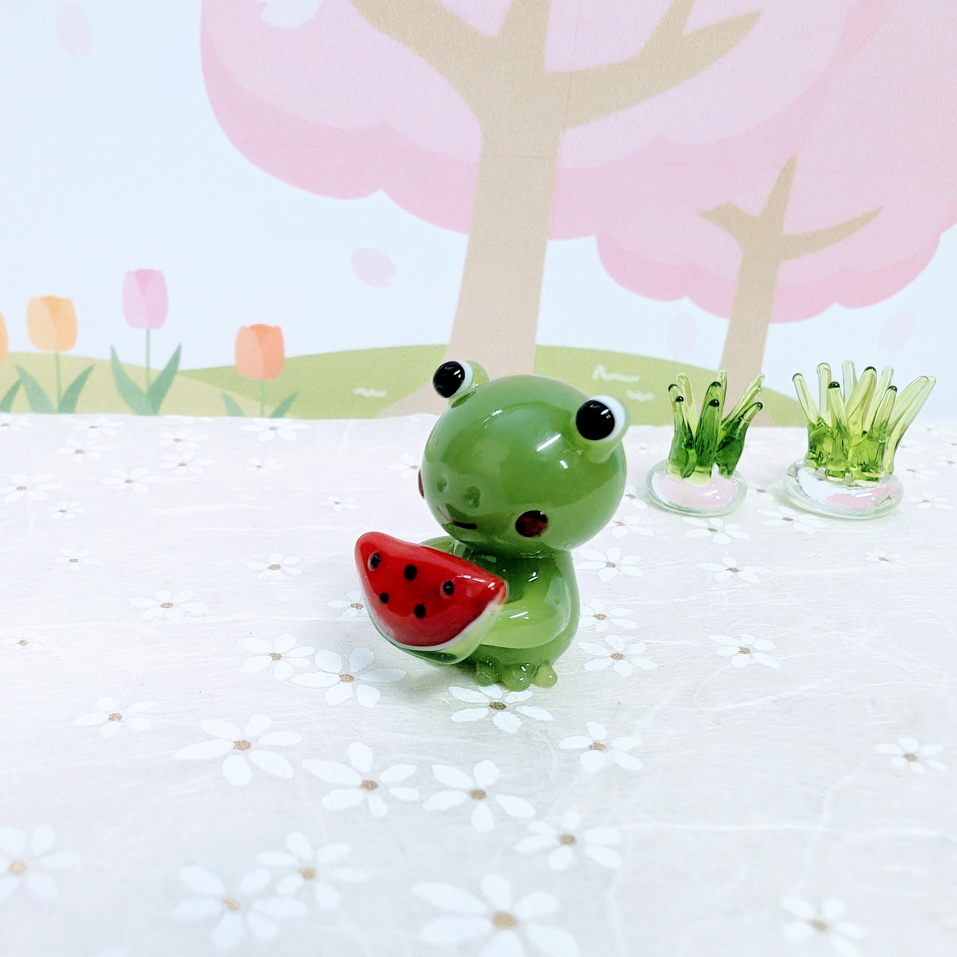 ガラス細工 カエルとスイカ ミニチュア 雑貨 置物 小物 蛙