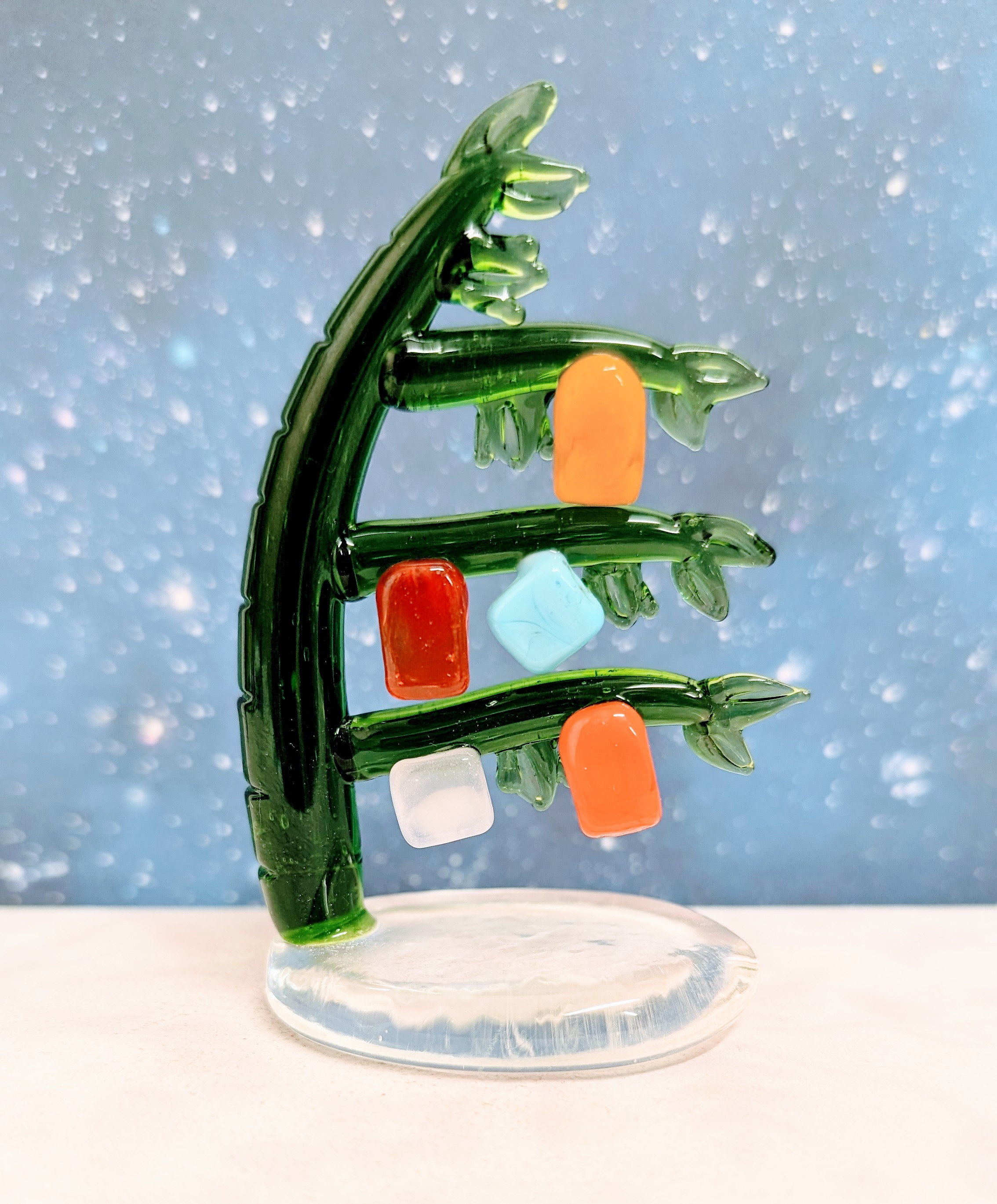 ガラス細工 七夕飾り 笹の木(台付)ミニチュア 雑貨 置物 小物 七夕 ディスプレイ