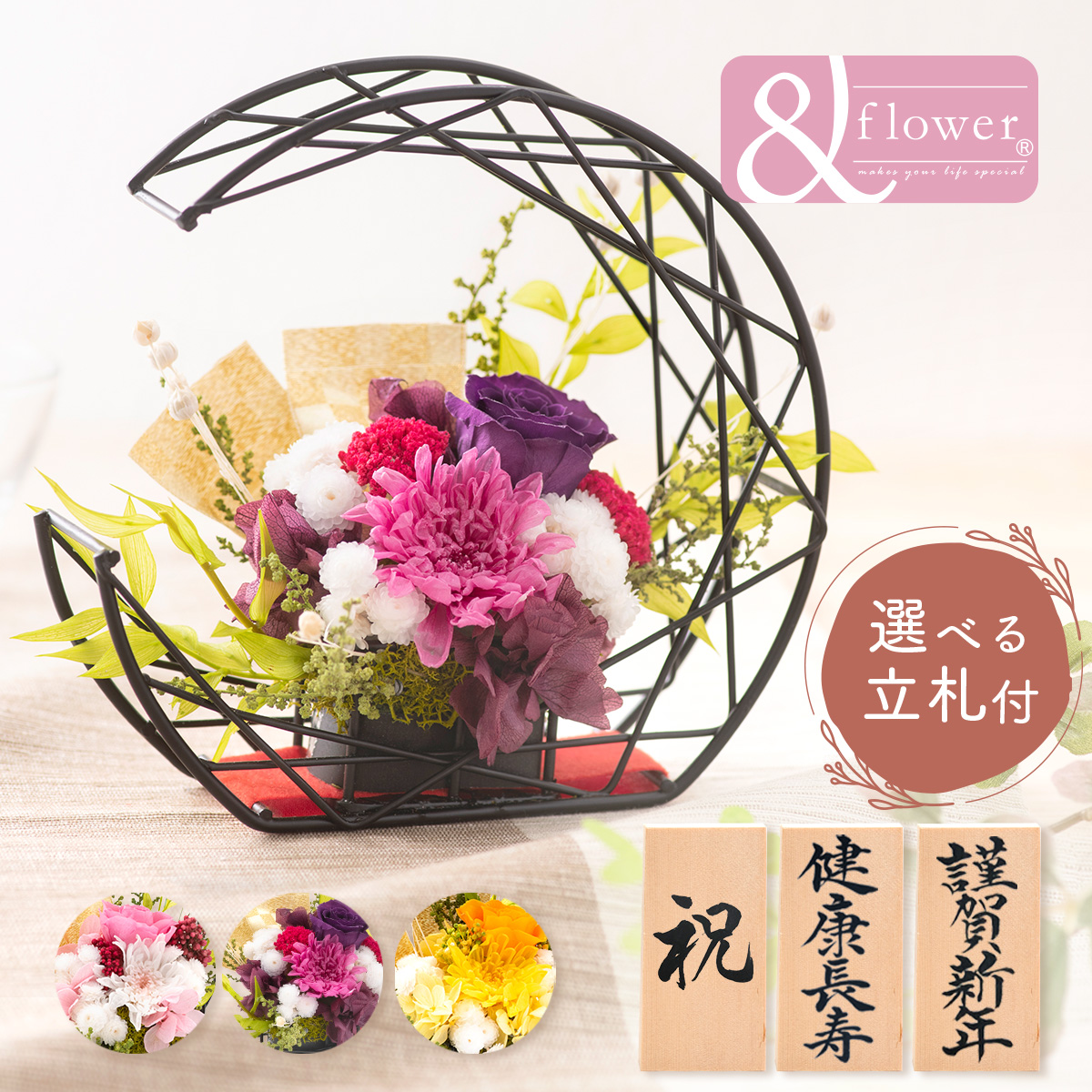 お正月 迎春 謹賀新年 和風アレンジ フラワーアレンジメント ミニ おしゃれ 喜寿 米寿 還暦 ギフト &preser プリザーブドフラワー【結月(ゆづき)】