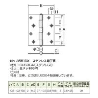 2枚入 ARCH(アーチ) NO.3551DX 角丁番 (義星) 金メッキ (ビス付) 2.0×102mm