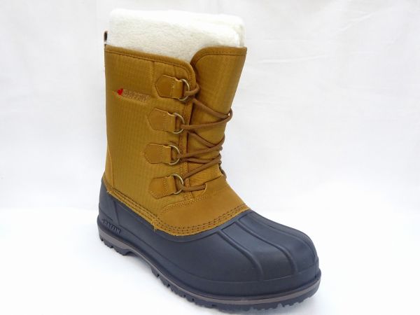 商品説明 ウインターシューズを得意とする1979年創業のカナダのシューズブランド。保温・防水・防滑機能搭載のウインターシューズ(防寒シューズ)。インナーは取り外しできるので着用後に外して乾かすことができます。インナーと靴底の間に銀色の断熱シートが入っているので地面からの冷気を防いでくれます。サイズ感はアディダスやコンバースの30cmを履いているスタッフ(身長187cm、体重65kg)がUS12でちょうどよい感じでした。全体が厚い生地で密着感があるので圧迫感が苦手な方や甲高幅広の方は1〜2サイズ大きめ推奨です。片足重量 約1080g(US12で計測)
