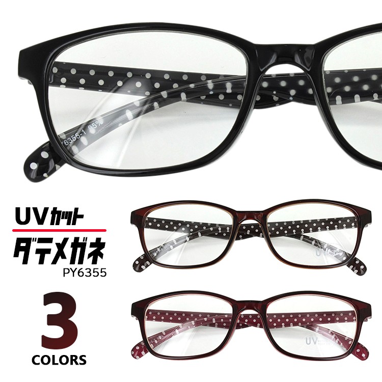 伊達メガネ uvカット レディース メンズ ダテメガネ だてめがね おしゃれ 眼鏡 ウェリントン セルフレーム クリアレンズ UVカット py6355 3カラー ドット 水玉