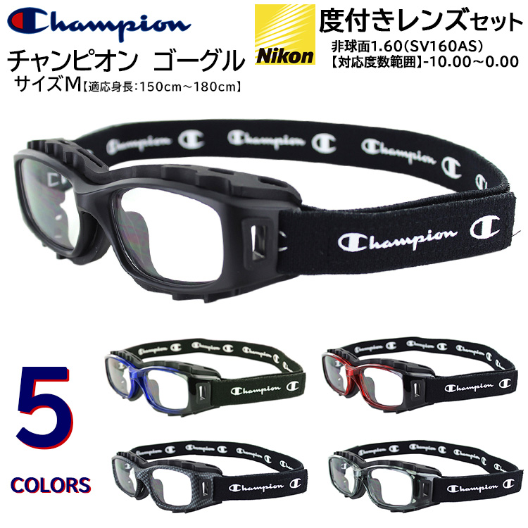 スポーツ用メガネ 度付き スポーツゴーグル サッカー 野球 バスケット Champion Mサイズ 小学生 高学年 中学生 高校生 大人 レンズセット スポーツ バレー CH93M