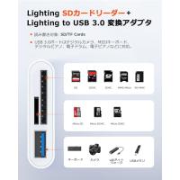 ?【 i-Phone SDカードリーダー・usb 変換アダプタ】このusb カメラアダプタには[SDスロット+microSDスロット+USB3.0ポート]を各1ポート搭載し、SD、SDHC、SDXC、MicroSD、MMC Micro、RS MMC、MicroSDHC、Micro SDXCなどのカード、デジタルカメラ、MIDIキーボード、USBストレージ、ゲームコントローラー、マウスなどのUSB周辺機器に対応。otgカメラアダプタと接続だけで、PCを使わずに、i-PhoneとSDカード、microSDカード、USBメモリの間で、写真や動画やファイルなどのデータのやり取りが双方向で直接に移行できます。
