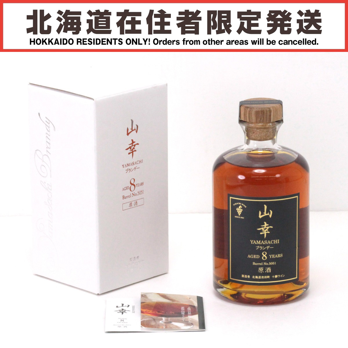 【北海道内限定発送】 北海道池田町 十勝ワイン 山幸 ブランデー 原酒 8年 500ml 62度 箱付き 未使用に近い 未開栓