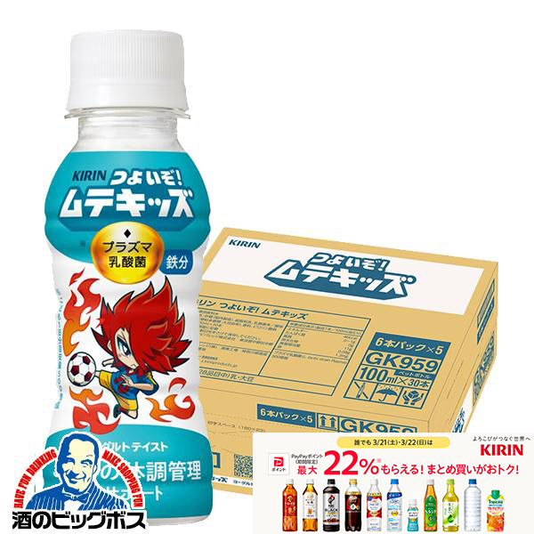 1箱 子ども健康飲料 プラズマ乳酸菌 ヨーグルトテイスト 送料無料 キリン つよいぞ!ムテキッズ 100ml×1ケース/30本(030)『GCC』