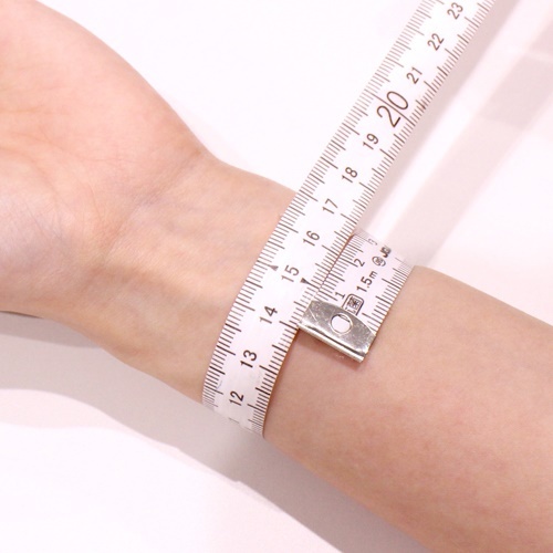 手首周りの実寸を元に、若干ゆとり(10mm程度)をもたせて調整いたします。