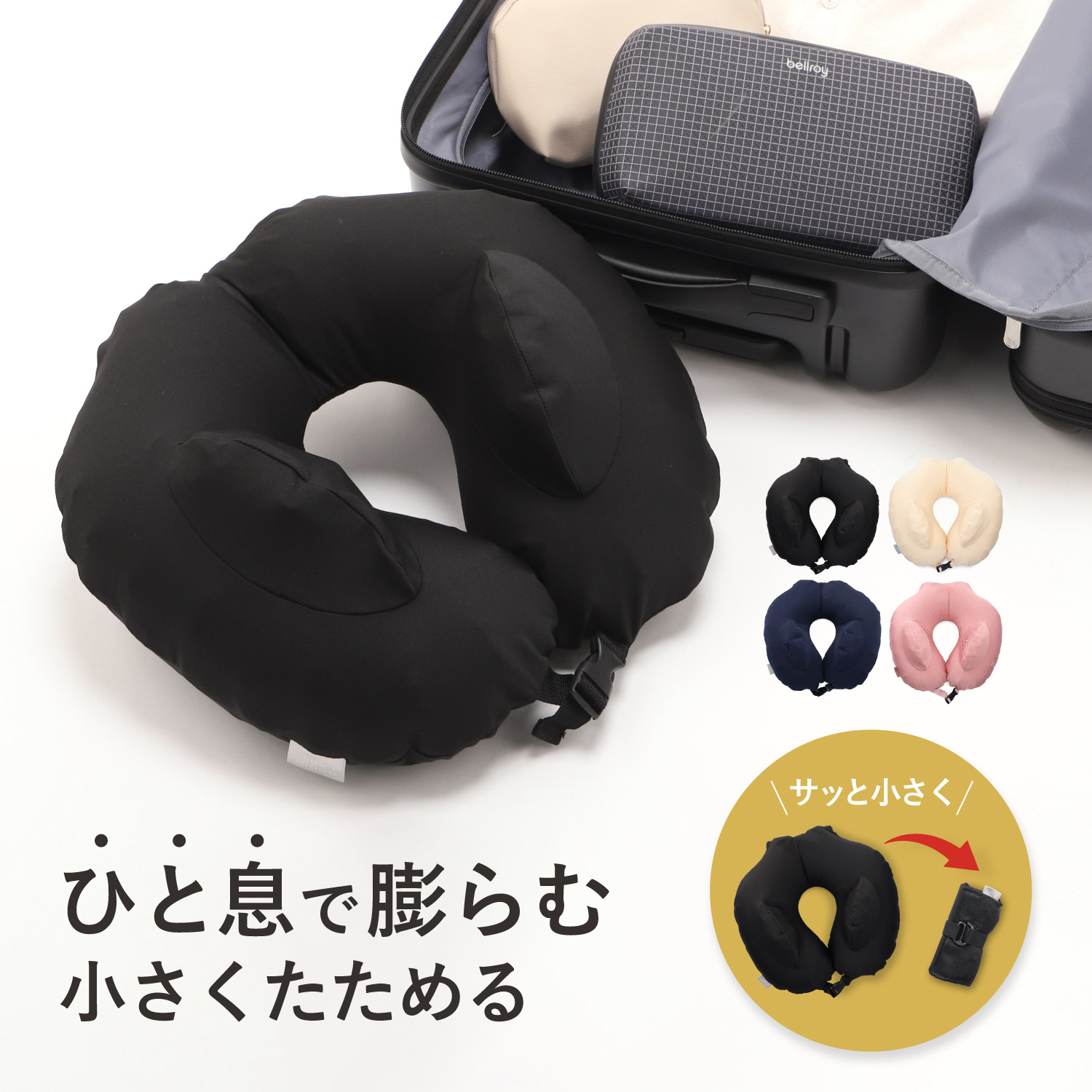 携帯性抜群!新発想のネックピローでいつでも快適な休息を。旅行や出張、オフィスでの仮眠にぴったり!驚くほどコンパクトに収納できる、このネックピローは、あなたの移動をより身軽にし、どこでも快適な休息をサポートします。リュックに入れても邪魔にならない超コンパクトサイズが非常に魅力的な点です。その秘密は、「ひと息でふくらむ」特別仕様(生産工場の特許取得済み)にあります。従来のポンプ式ネックピローが膨らむまでに時間を要したのに対し、この新構造なら必要な時にサッと準備が完了します。飛行機、新幹線、バスでの移動中も、待ち時間なく快適な睡眠環境を整えられます。この独自の仕様のおかげで、高さやボリュームの調整も自由自在。空気を入れたり抜いたりするだけで、あなたの首にぴったりの快適な状態を簡単に見つけられます。移動中の首の負担軽減、リラックス効果を追求したこのエアピローで、移動中や休憩時間、どこにいても心地よいリフレッシュを体験してください。