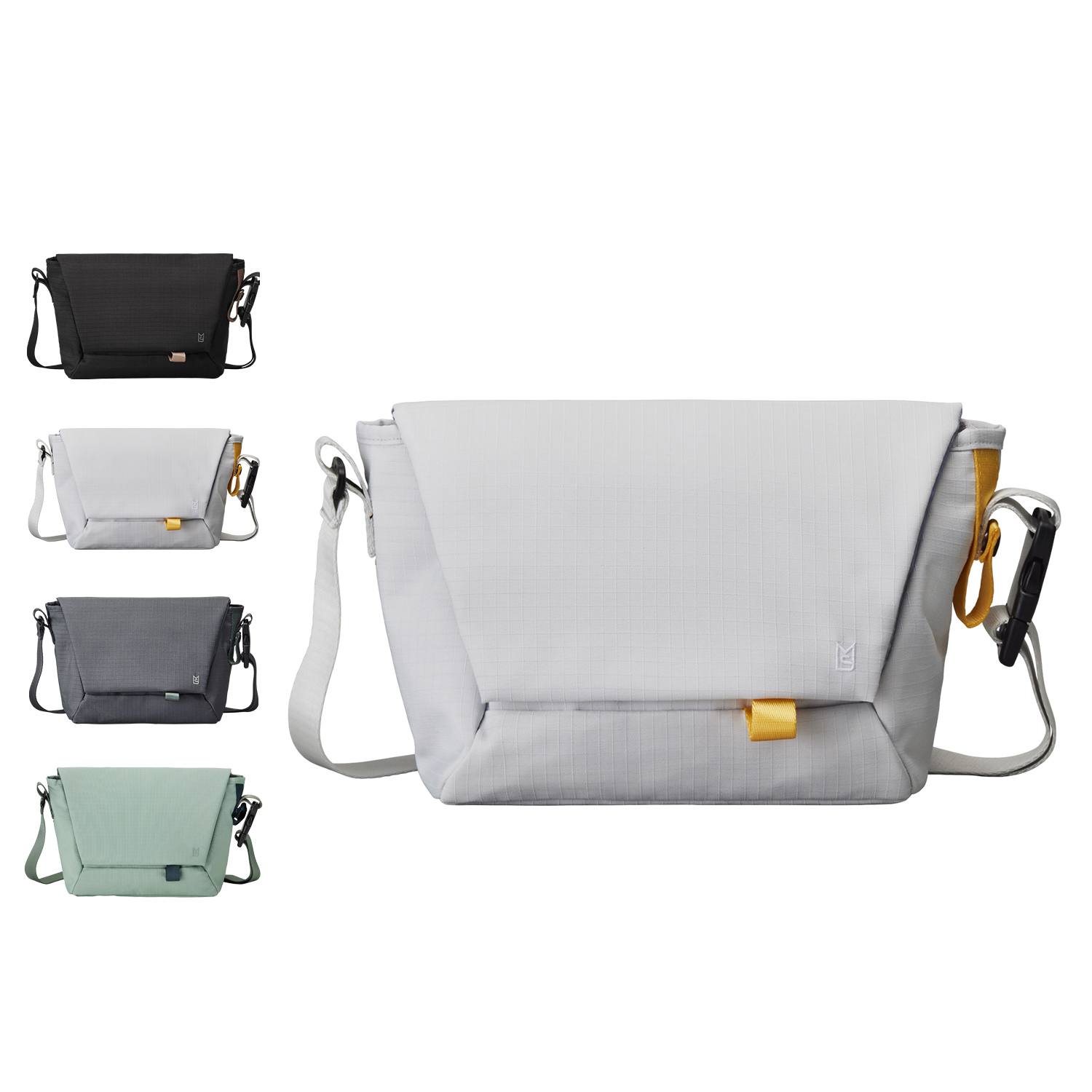 都市建築に着想を得た、幾何学的デザインのメッセンジャーバッグS。必需品や500mLペットボトルもすっきり収まるコンパクトなサイズ設計。ショルダーはワンタッチ式のバックル付きで、着脱もスムーズにできます。多角形を組み合わせた立体フォルムを生かし、各面にファスナーポケットやサイドポケット、背面ポケットなど用途に応じたポケットを整然と配置することで「収納力」に特化。