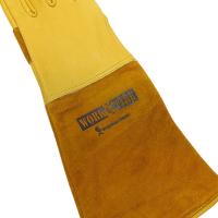 防水仕様で、腕までガードしてくれるロングタイプのカウハイドレザーグローブです。ロープワークや薪割、ファイアーワークなど幅広く対応し、素早く脱着出来るのが特徴です。しなやかな本革のカフ部に入った刻印ロゴが印象的なデザイン。シンプルで使いやすいアイテムです。