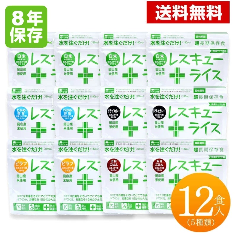 (賞味期限2034年11月以降)レスキューライス 12食セット 送料無料 非常食 保存食 備蓄品 防災用品 8年保存