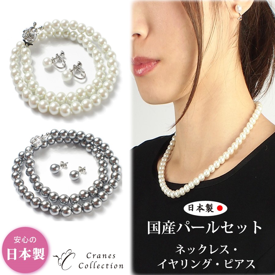 日本製 パール 真珠 ネックレス イヤリング ピアス 2点セット 冠婚葬祭 8mm フォーマル 結婚式 卒業式 葬式 法事 ギフト セレモニー 巾着袋付 七五三